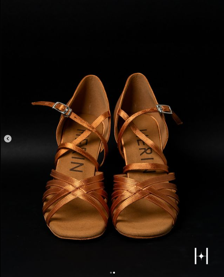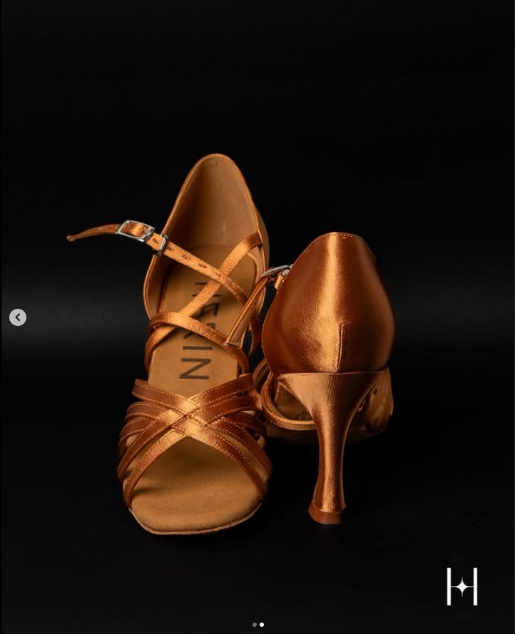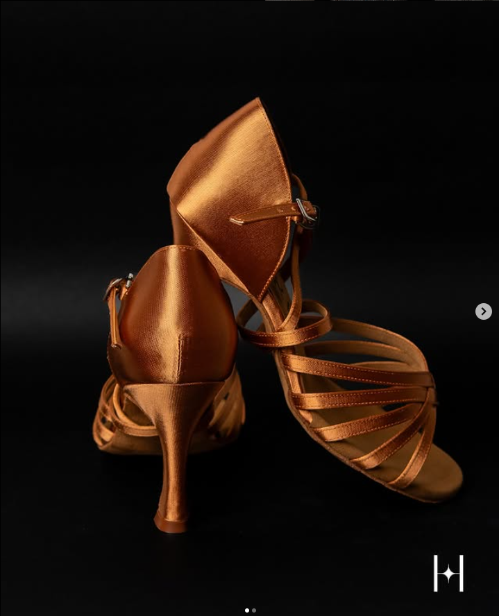 Heel Height: Available in multiple heights, typically ranging from 2 inches (5 cm) to 3.5 inches (9 cm). Designed to provide elegance and stability during complex dance moves. Sole Material: Made with suede or leather, offering a balance of smoothness for spins and grip for control on the dance floor. Width Options: Available in narrow, regular, and wide widths to ensure a snug fit for all foot shapes. Adjustable straps to customize the fit. Upper Material: Crafted from satin, leather, or mesh, combining style with breathability. Decorative rhinestones or glitter for a sparkling appearance under stage lights. Toe Design: Open-toe for added flexibility and ventilation, allowing precise toe movements. Padded insoles to cushion the ball of the foot during prolonged use. Weight: Lightweight construction (approximately 200-300 grams per shoe) to reduce fatigue and enhance agility. Arch Support: Moderate arch support to ensure comfort and prevent strain during long performances. Closure: Adjustable buckles or quick-release snaps for secure fitting and ease of wear. Colors and Finish: Available in a variety of colors like nude, black, gold, or silver to match dance costumes. Glossy or matte finish options for different styling preferences. Durability: Reinforced stitching and high-quality materials designed to withstand intense dance sessions.